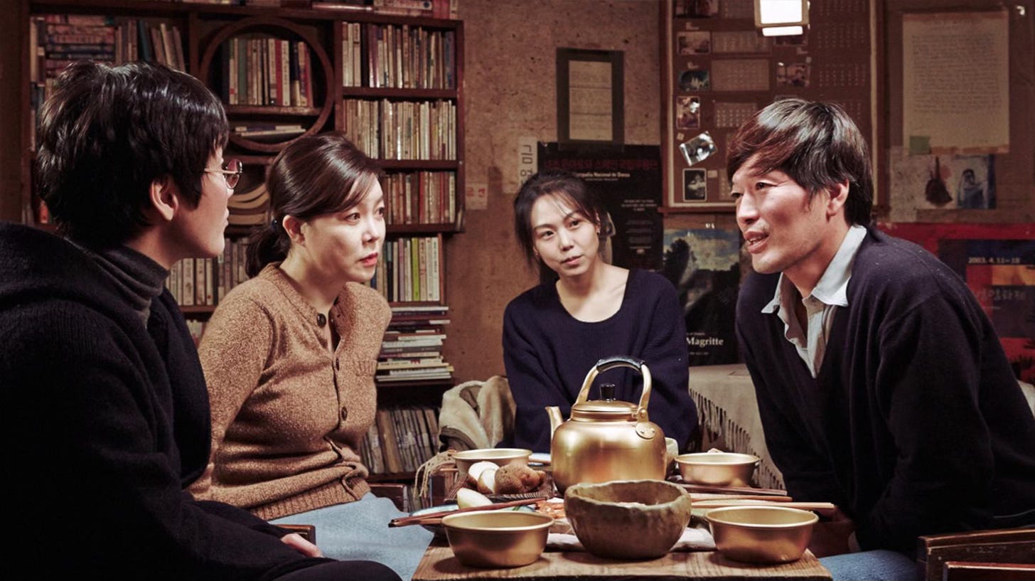 A film about chance encounters, in which every word spoken is a step taken before arriving at a fork in the road. Ten years later, the 2-part structure of Right Now, Wrong Then still feels special. Hong Sang-soo’s style divulges a blend of sadism and self-flagellation - conquering the audience’s disbelief with such masterful handiwork, then puncturing it rather arbitrarily with jarring zooms. It’s like destroying an intricate sandcastle hours before even leaving the beach. The Korean director’s dinner table scenes are emblematic and always rich in possibilities, capable of switching from poetic exchanges to awkward disasters in the span of a minute, and Jung Jae-young is the perfect medium for this unpredictable tone. But no one can quite do it like Kim Min-hee, with her stares that can read as reserved, enamoured or barely tolerant, as if one wrong word or cup of makgeolli away from exploding. It’s difficult to estimate how many equally wonderful performances by Kim Min-hee haven’t been robbed from audiences, as the actress has been blacklisted from mainstream South Korean cinema since the reveal of her affair with Sang-soo. The extramarital incident is, of course, mirrored here (as in many of his films), and characters are positioned as surrogates for the filmmaker and the lead actress. Right Now, Wrong Then is a lesson in auteur cinema.